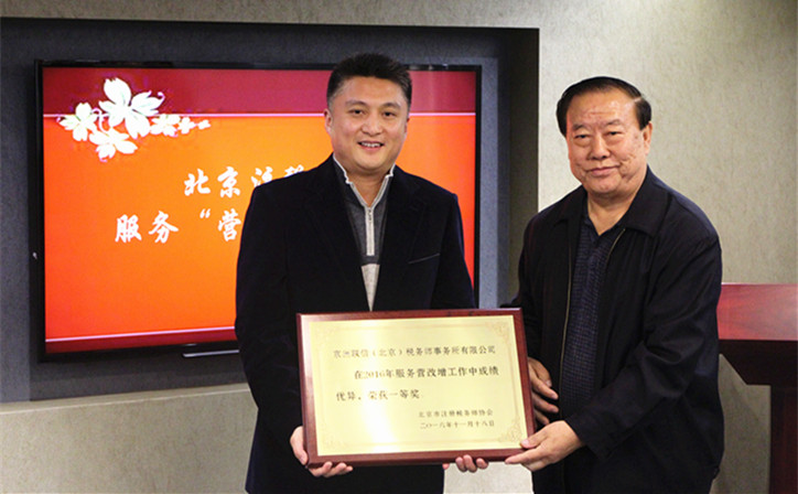 座谈会期间,北税协对服务“营改增”表现突出的事务所进行了表彰,京洲联信北京公司荣获一等奖。