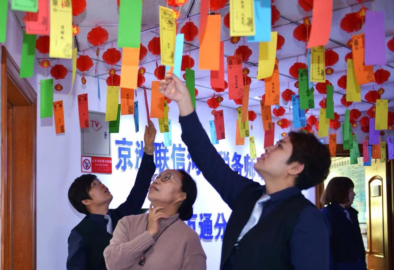腊月二十三是北方传统年俗的小年,各大超市、年货大集摩肩接踵、热闹非凡,人民怀揣喜悦的心情迎接金犬新年。而本是安静办公场所的高新开发区办公大楼也打破了往日的寂静,人们举目仰望,或指指点点、或窃窃私语,三一群俩一伙的猜谜正酣。原来,这是河北公司为迎接金犬新年而举办的有奖竞猜活动。